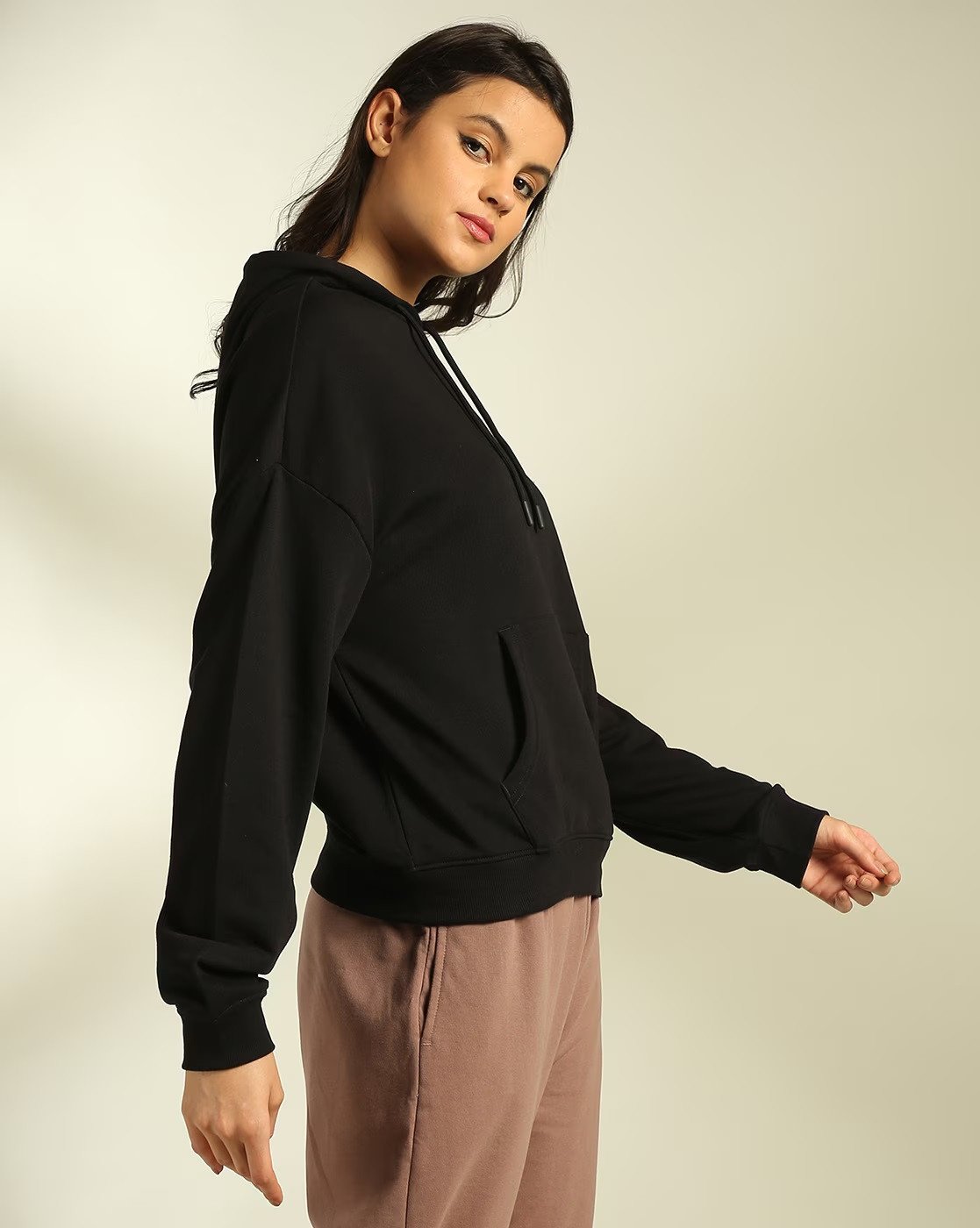 Pair it effortlessly with jeans, leggings, joggers, or skirts for multiple casual and chic outfit options. Whether for casual daywear, outdoor activities, or cozy weekends, the Black Women's Cotton Hoodie is a must-have wardrobe staple for women seeking both fashion and comfort. High-quality stitching and soft fabric guarantee long-lasting wear while maintaining a stylish and modern appearance.