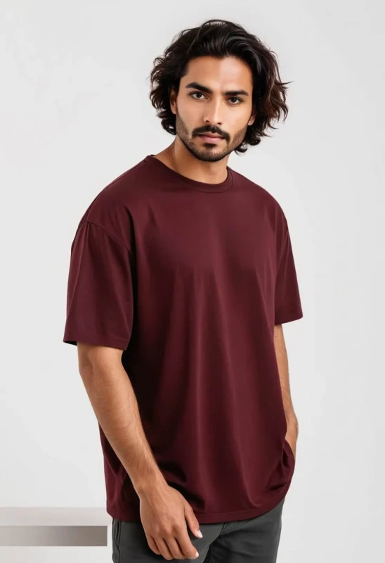 The rich maroon color is achieved through advanced dyeing techniques to ensure colorfastness and long-lasting vibrancy. The modern oversized fit features drop shoulders, relaxed sleeves, and a boxy silhouette, aligning perfectly with current streetwear and athleisure trends. We offer customization options including private labeling, embroidery, DTG/DTF printing, and premium packaging.