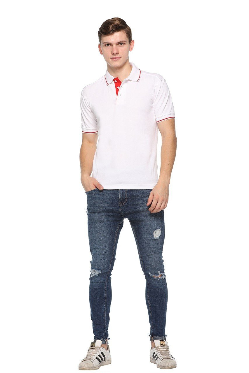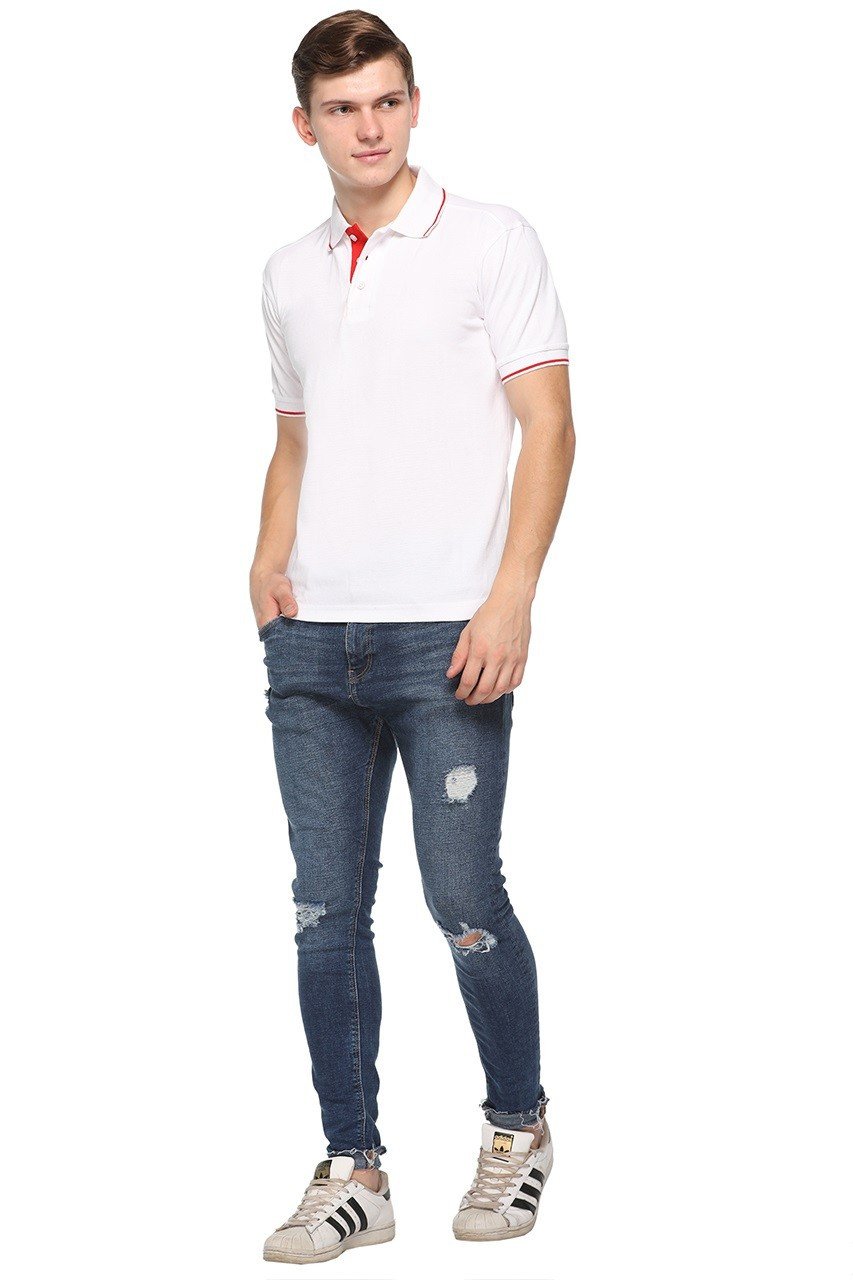 Upgrade your wardrobe with the Pikmee Highline Single Tipped White Red Line Polo T-shirt, designed for men who seek a combination of style, comfort, and versatility. Crafted from high-quality, breathable fabric, this polo ensures all-day comfort while maintaining a sharp and modern appearance. The classic white base with a striking red line adds a touch of energy and sophistication, while the single tipping on the collar and sleeves gives subtle contrast for a polished look. Ideal for casual outings, office casuals, or weekend hangouts, this t-shirt pairs effortlessly with jeans, chinos, or shorts. The tailored fit provides a flattering silhouette, and durable stitching guarantees long-lasting wear. Whether aiming for a smart-casual vibe or a relaxed weekend style, this polo t-shirt is versatile enough for multiple occasions. Available in various sizes, it accommodates different body types comfortably, making it a must-have wardrobe essential. Combine premium quality, comfort, and modern style in this stylish white and red polo that elevates your everyday look.