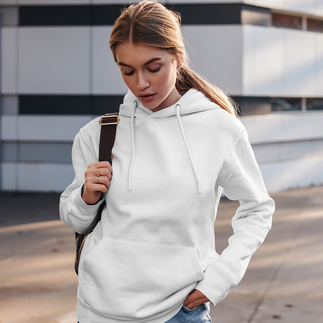 Its crisp white color adds elegance, freshness, and versatility to any outfit. Designed with a relaxed fit and adjustable drawstring hood, this hoodie ensures maximum comfort and style. Ribbed cuffs and hem enhance durability while maintaining a polished, trendy appearance suitable for everyday wear.