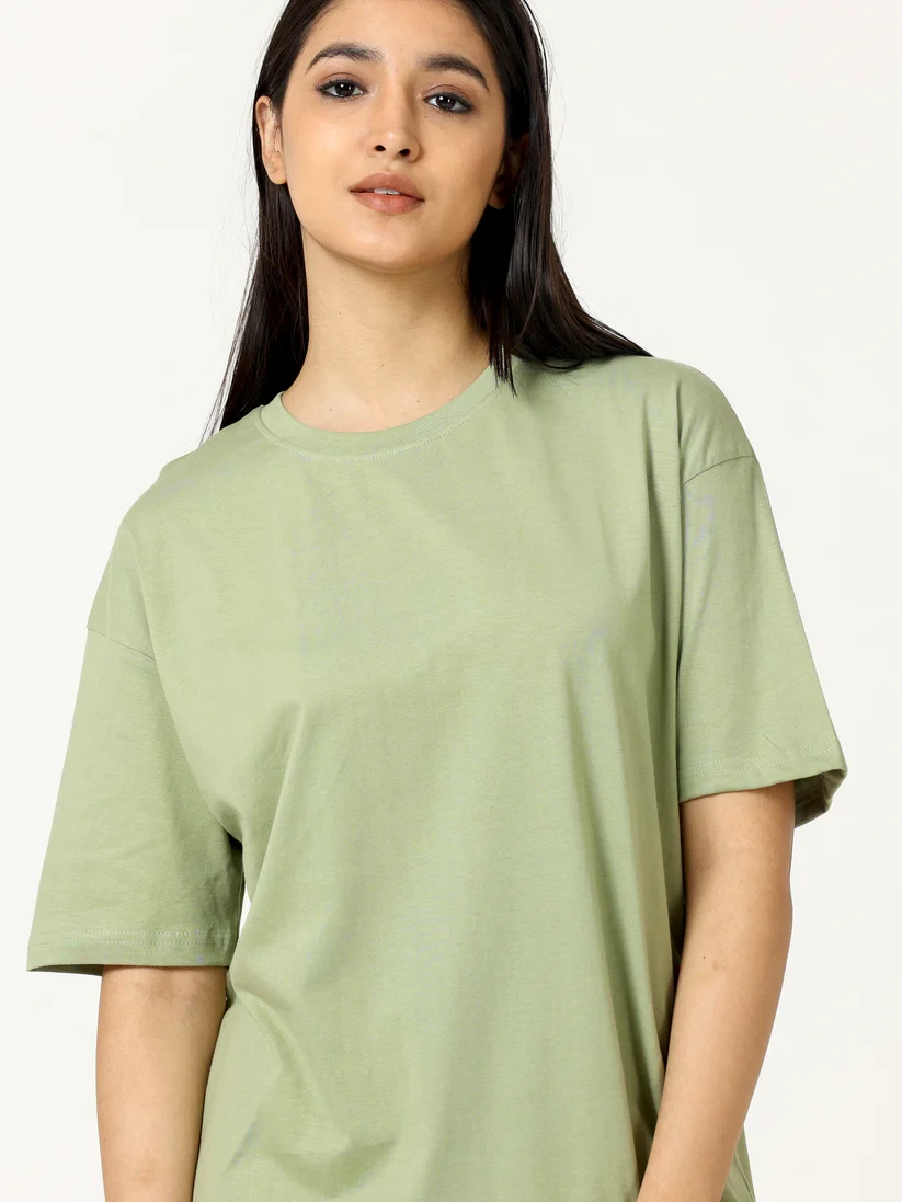 Pair it effortlessly with jeans, leggings, shorts, or skirts for versatile casual styling. Whether for casual daywear, college wear, street style, or weekend outings, the Light Green Women's Cotton Oversize T-Shirt is a must-have wardrobe staple for women seeking both comfort and fashion. Its breathable cotton fabric and stylish oversize fit make it suitable for all-day wear and multiple outfit combinations.