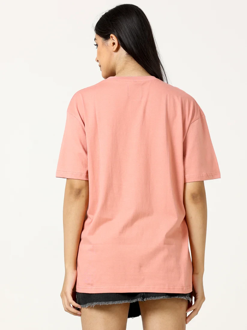 Its gentle peach color adds a fresh, feminine, and elegant vibe to any outfit. Designed with an oversize fit, this T-shirt delivers a relaxed, effortless style, perfect for layering or wearing on its own. High-quality stitching and finishing ensure long-lasting durability while maintaining a trendy, fashionable look.