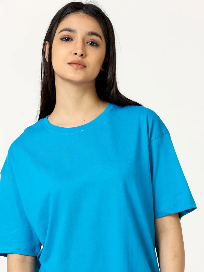 Pair it effortlessly with jeans, leggings, shorts, or skirts for versatile casual styling. Whether for casual daywear, college wear, street style, or weekend outings, the Sky Blue Women's Cotton Oversize T-Shirt is a must-have wardrobe staple for women seeking comfort, style, and versatility. Its breathable cotton fabric and trendy oversize fit make it suitable for all-day wear and multiple outfit combinations.
