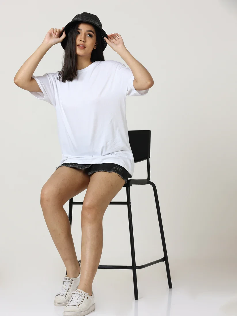 Pair it with jeans, leggings, shorts, or skirts for a variety of casual and chic outfit combinations. Whether for casual daywear, college wear, street style, or weekend outings, the White Women's Cotton Oversize T-Shirt is a must-have wardrobe staple for women seeking both comfort and fashion. Its breathable cotton fabric and trendy oversize fit make it perfect for all-day wear and versatile styling options.
